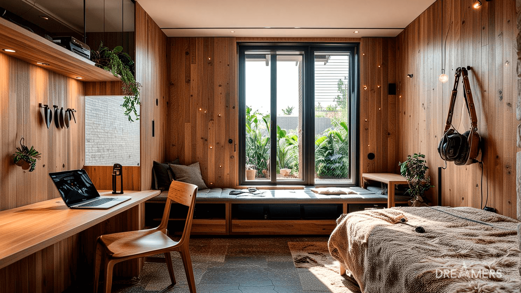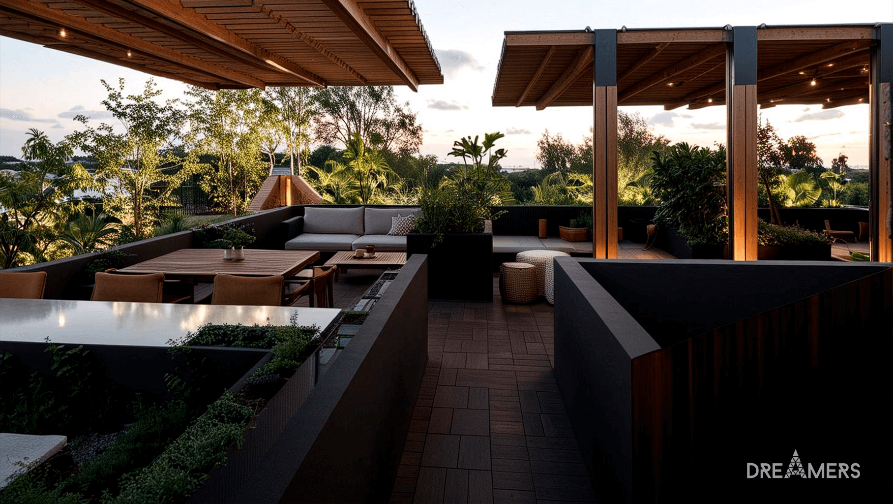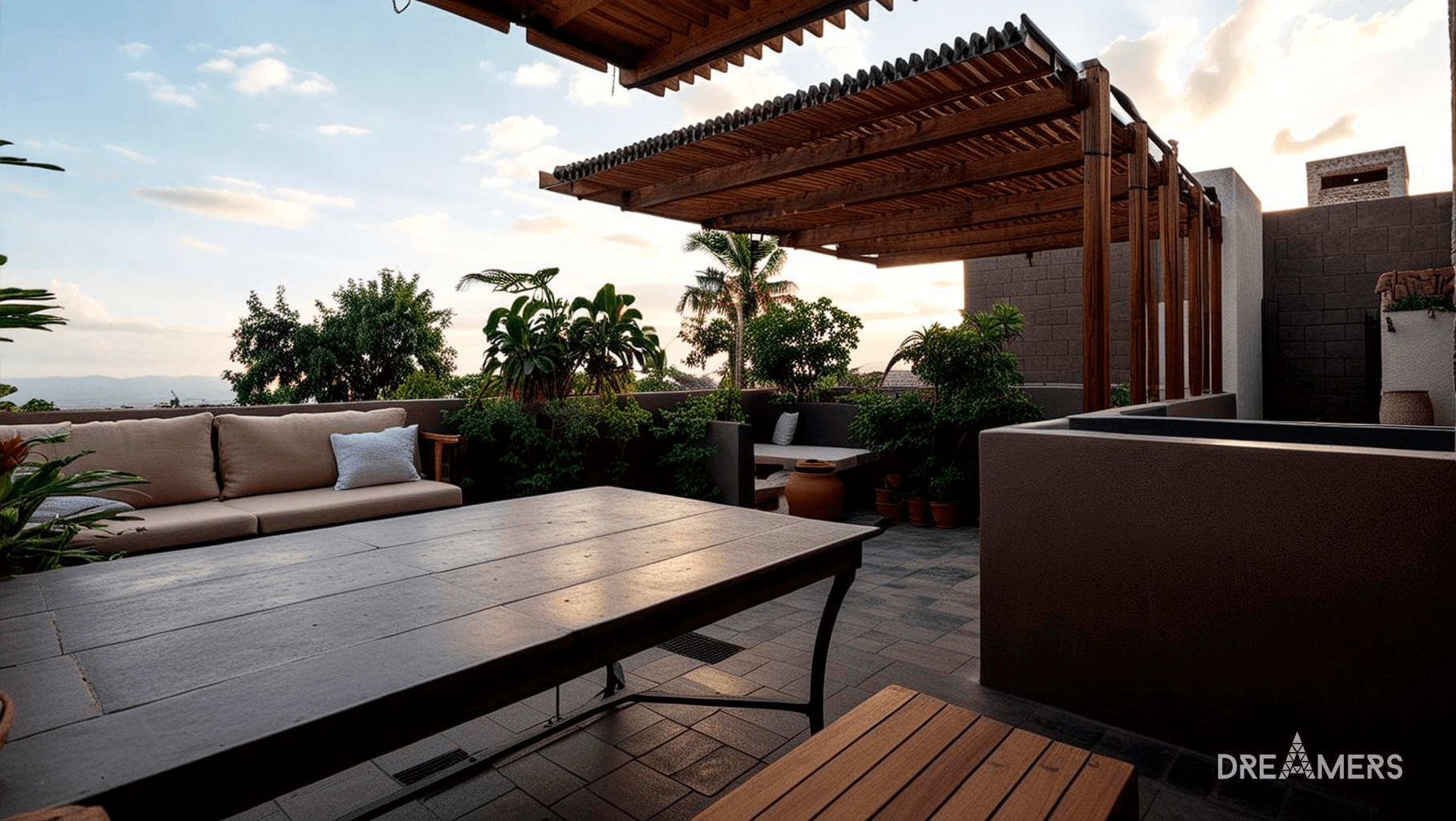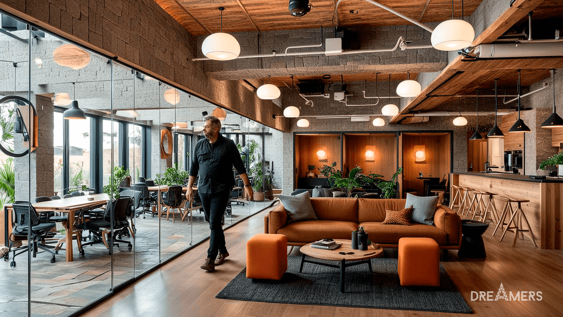 Las zonas comunes se conciben como espacios de encuentro y bienestar. La sala principal de convivencia, equipada con mobiliario moderno y confortable, invita a la relajación y la socialización. La cocina compartida, con su diseño funcional y contemporáneo, fomenta la interacción informal entre los residentes. La terraza se presenta como un refugio verde, un espacio diseñado para conectar con la naturaleza mediante el uso de materiales naturales y vegetación integrada, ideal para la relajación y las reuniones informales.